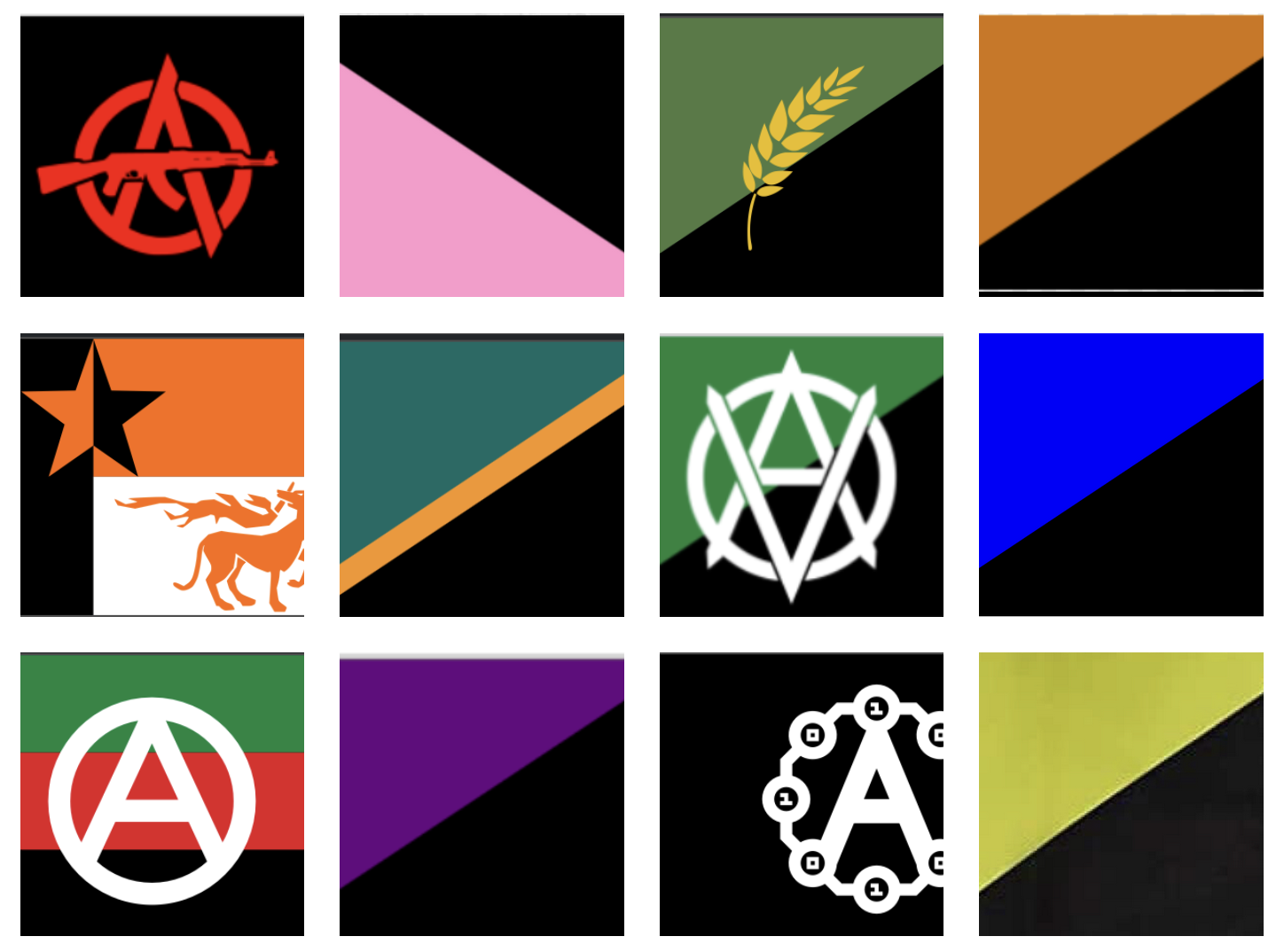 Now we play another game, I will explain: there’s 20 types of anarchy… which one is your identity? I’ll show you flags and you tell me. Just shout out if you agree with that ideology it’s okay to say you are two or three or even five or seven or eleven